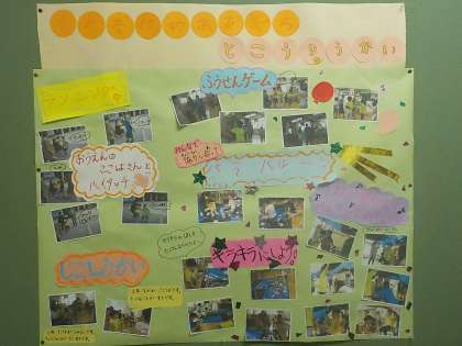 先日呉竹総合支援学校の友だちと交流を行いました。一緒にランニングをしたり,バルーンを制作したりしました。笑顔いっぱいの楽しい交流会でした。その時の様子をポスターにして,職員室前に掲示していますので,ぜひ見てください。