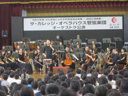 ザ・カレッジ・オペラハウス管弦楽団に来ていただき,全校児童にオーケストラ演奏を聴かせていただきました。初めてオーケストラの生演奏を聴く児童もたくさんいました。