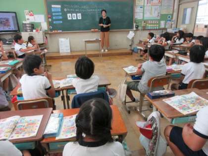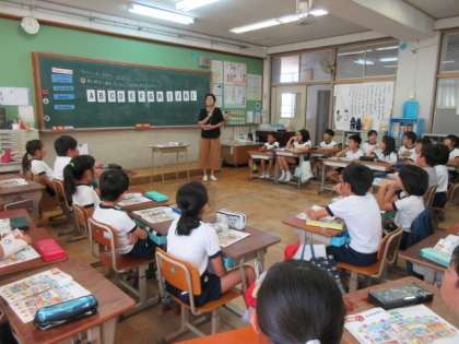 外国語ではアルファベットの学習をしています。松田先生にアルファベット一つ一つの発音を丁寧に教えてもらいました。そのあと,アルファベットの聞き取りゲームで楽しみました。