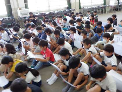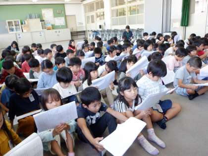 11月15日(金)の学習発表会に向けて,学年で集まって練習を始めました。今日は,全員で通して台本の読みあわせをしました。一回通してみて,子どもたちから「楽しく読もう。」「詩の雰囲気が表れるように読もう。」「みんなで言うところは,タイミングを合わせて言おう」など,これからのめあてが出てきました。みんなから出てきためあてを意識して練習していきたいと思います。