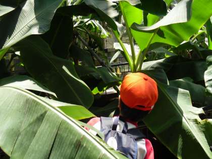 バナナの実がなっている木,サボテンなどを見て