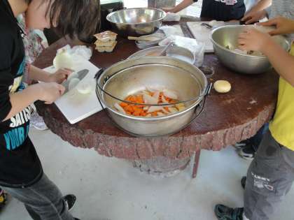 包丁を使うことやかまどの火起こしなどに,初めて取り組む子どもがほとんどでしたが,事前に学習したことを活かしたり,引率の先生にアドバイスをもらったりして,どのグループもカレーを見事に完成させました。