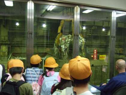 いつもよりも少し早く登校した4年生は,まず東部クリーンセンターに。大きなクレーンで1回2トンものゴミを焼却炉に入れているところを見せていただきました。
