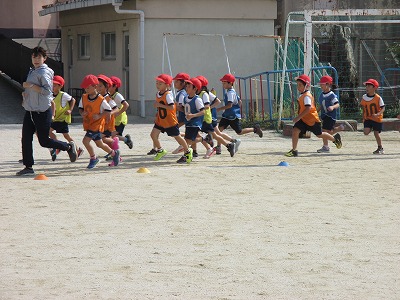 持久走記録会に向けて,かけっこを始めました。子ども達は1周目をとても速く全速力で走る子がいるのですが,今回は自分のペースをつかむ学習にしました。途中で歩いてしまう子も一人もいませんでした。