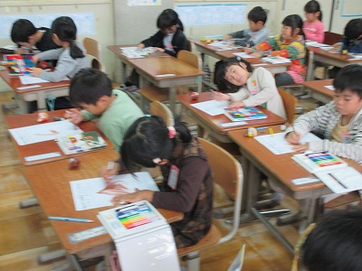 朝顔やヒマワリの種取を済ませ,これから育てる花はどのようなものがあるのかを教科書を見て学習しました。今回は球根を植えることにしました。飢える球根の観察したとき,横から見たり,触って感触を確かめたりと,観察する観点をしっかりとらえてカードにかいていました。