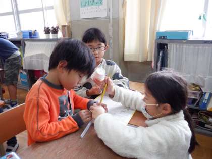 国語科の「しかけカードの作り方」で学習したことを生かして,1年生にプレゼントするために「おもちゃの説明書」を書きました。春に一緒に校外学習に行ったペアの1年生にプレゼントしようと,いつも以上に丁寧に書きました。