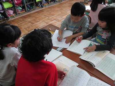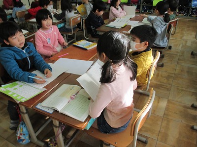 手紙をだれかに書いたことがあるか,書いたときの経験を話し合い,手紙はどんな時に書くのか,手紙の役割についてグループで話し合いました。