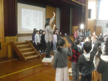 本日,立春に朝会がありました。学校長から『言葉と心の大切さ』の話や,校内表彰,全校合唱の取り組みを行いました。