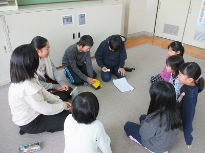 6年生の家庭科の学習「あなたは家庭や地域の宝物」の単元の学習で,1年生と一緒に活動します。1年生は生活科の「もうすぐ2年生」の単元で,1年間の成長を考えることを,6年生と活動することで気づいてほしいとおもいとりくんでいます。1回目は6グループに分かれ,自己紹介から始まり,どのようなことをしたいかを話し合いました。