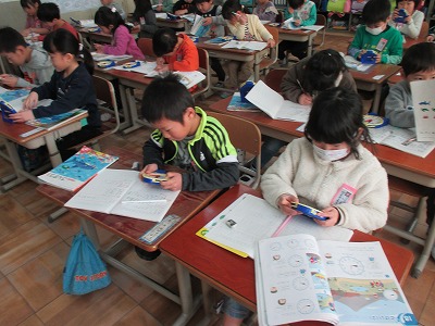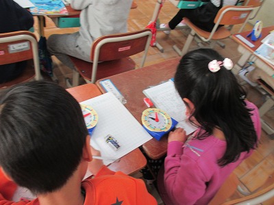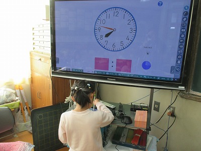 とけい(2)では,何時何分までを読めるように学習しています。今はまだ,時計の模型を使って学習していますが、徐々に使わなくても時刻が読めるようになってほしいと思います。
