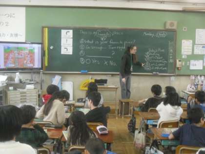 ALTのルーニー先生と一緒に学習しました。『My favorite place』自分のお気に入りの場所を英語で案内する活動を行いました。