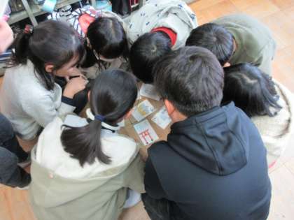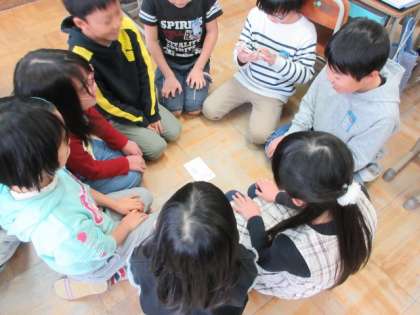 好きな漢字の音読みと訓読みを使って,五七五の音訓かるたを作りました。作った後は,自分たちのかるたで楽しく遊びました。