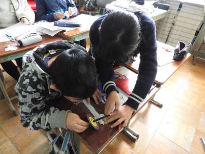直径と円周の関係を調べているところです。