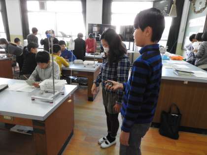 子どもたち,実験に真剣です。