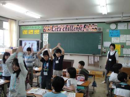 ジェスチャーをつけて,1から10までの数の数え方を学習しました。電子黒板機能付大型TVを使って,リズムよくできていました。