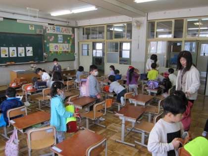 その後は,学校内を少し探検。職員室や保健室に行ってみました。何もかも初めてですが,「もう覚えた!」「やり方が分かった!」「ちゃんとできた!」と話してくれる元気な1年生。これからたくさんのことを,学校で一緒に学んでいきましょうね。
