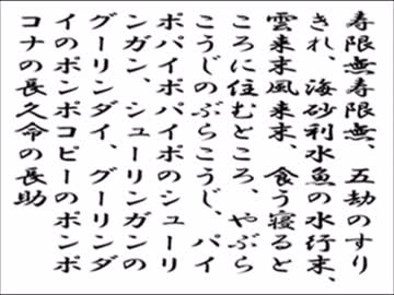 国語科の教科書に載っている「寿限無(じゅげむ)」です。寿限無は,落語の演目の一つで江戸時代から早口言葉として親しまれています。(落語については,一緒に勉強しましょう)