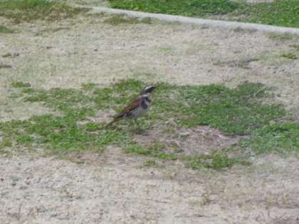 ふと,総合遊具の後ろを見ると,こんな鳥がやって来ました。ハトくらいの大きさでスズメより明るい茶色の羽があります。