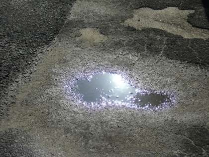 雨上がりの 光る水たまりは 美しいです。