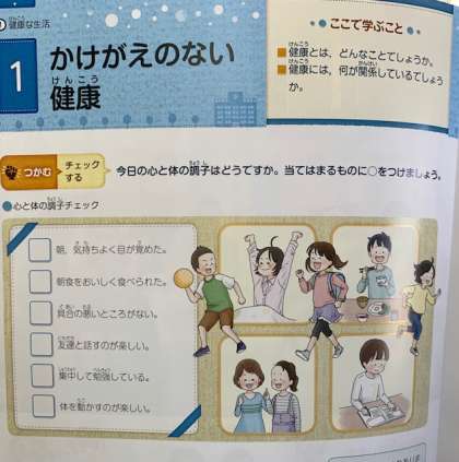 元気いっぱいですごすためにどんな生活をしたらよいのか,ほけんの教科書をひらいてみるのもいいですね!!