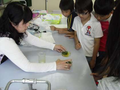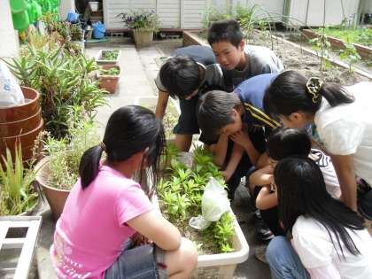 植物の葉に日光が当たると葉にでんぷんができるのだろうか。植物の葉から水が出ているのだろうかということを実験で確かめることができました。お天気に恵まれてよかった,よかった。