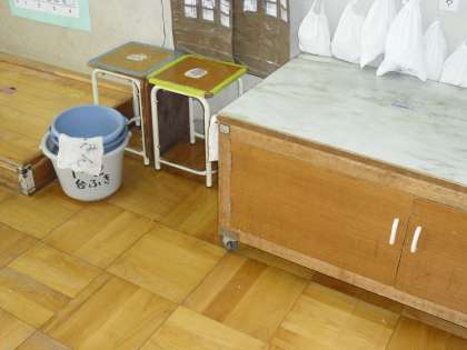 おぼんはきれいに洗ってから給食台に直してあり、給食台はきれいに拭いた後きちんと元の場所に戻されていました。使った台ふきんも並べて干してあり、とてもきれいに後片付けができていました!!給食当番もおたすけマンも、とっても早く、上手にお仕事ができるようになっています。