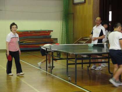 放課後,体育館では卓球部が活動していました。地域ボランティアの方が個別で丁寧に指導しておられ,初心者の部員も安心して笑顔で活動できていました。