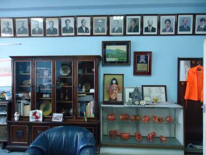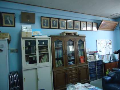 ここには,いままでの こうちょうせんせいの しゃしんが ならんでいます。