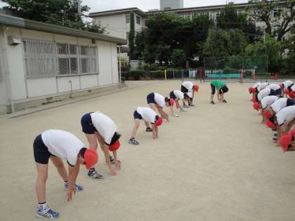 運動場で50mのタイムを計りました。準備運動を入念に行い,各自で練習した後に2回ずつ走りました。今回のタイムをもとに,リレーのチーム分けをする予定です。