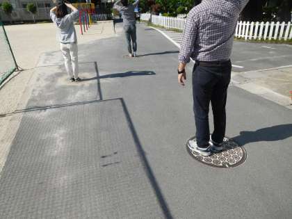先生達は,マンホールを目印にしましたよ。