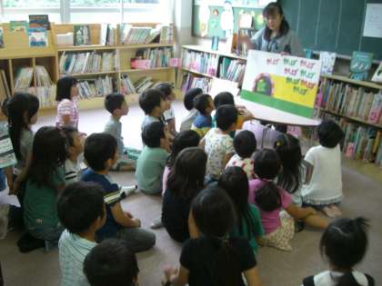 1年生とは思えないほど,45分間集中してお話を聞くことができました。「もっと読んで!」「先生,同じ本で小さい普通のサイズの本もあるよ。」といろいろおはなししてくれました。図書室へどんどんやってきて本を読んでくれるとうれしいです。