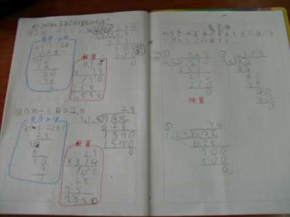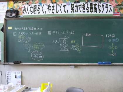 わり切れるまでする筆算の仕方を学習しました。子どもたちは,小数点を正しく移動することと,0を補うことに注意して計算していました。