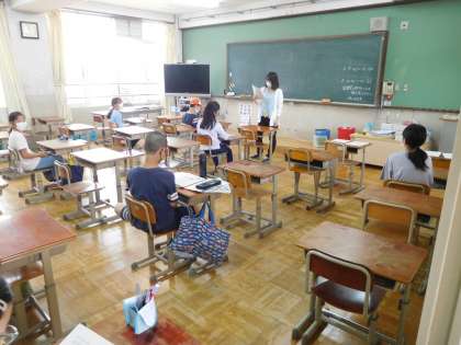 6年生は,教室で先生が出す課題に取り組んでいました。