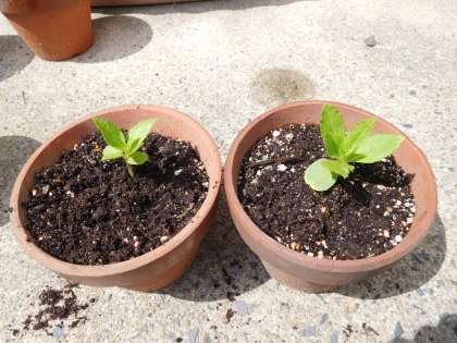 なので,間引いたホウセンカを,芽が出ていない鉢に植えかえをしてみました。