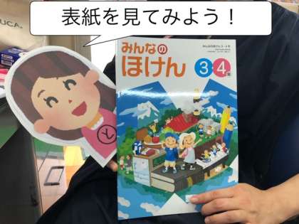 表紙には,たくさんの「けんこうにかんけいしていること」がかくれています。