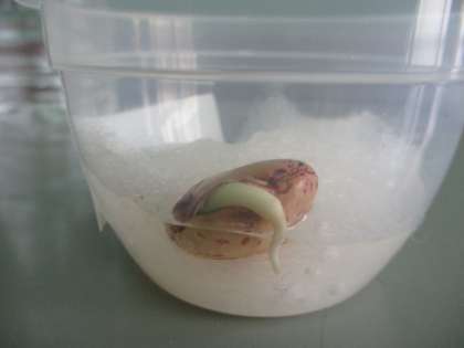 インゲン豆からしっぽのようなものが生えてきました。まさか,これは,芽???