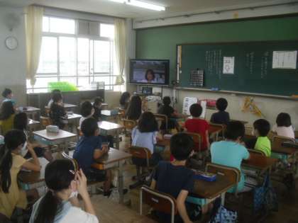 本日の朝会は,zoomを使い行いました。各教室の雰囲気が伝わり,一体感が生まれました。