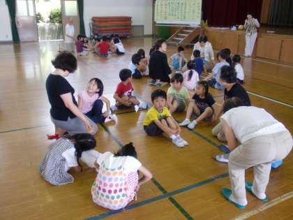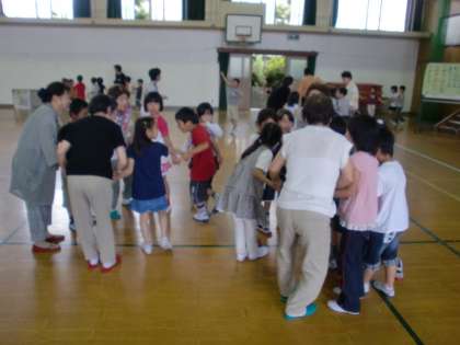にこにこ会のみなさんといっしょにわらべうたあそびを楽しみました。いろいろ教えていただいてとっても楽しい時間でした。