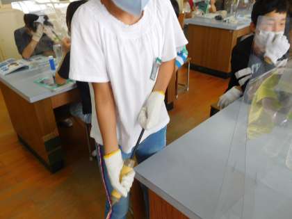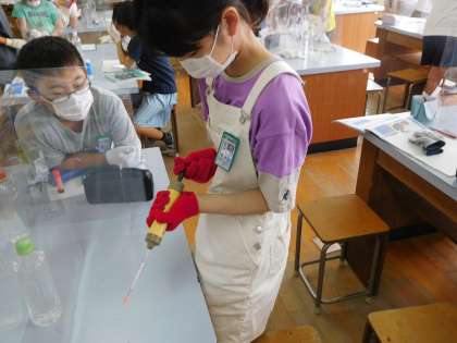 子ども達は,気体検知管の使い方の練習をしています。