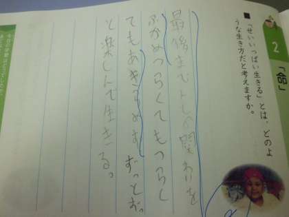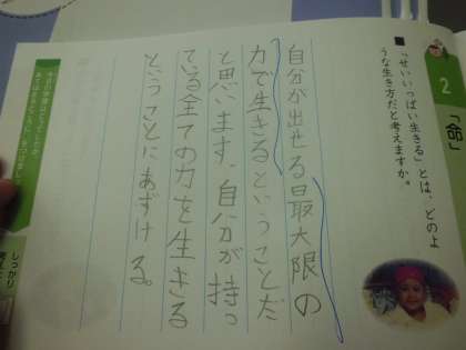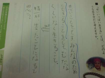 5年生は先週の道徳科に「命」という詩から“精一杯,生きることとは?”について考えました。
