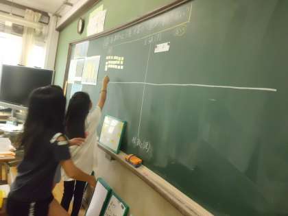 「わたしは,起きると考えました。なぜなら・・・。」「ぼくは,〜さんに付け足しで・・・。」「××の資料から・・・」など,たくさんの意見が出てきました。