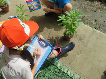 たねからかんさつしていたヒマワリとホウセンカ,ついにお花がさいたね!