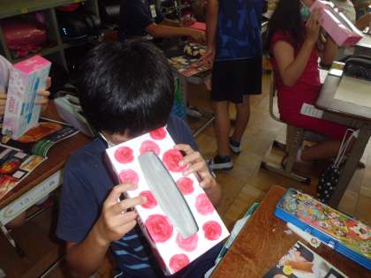 「うわ,プラネタリウムみたい!」「え,画用紙を箱の下に引いたらとっても綺麗になる!」といった声があちこちから聞こえてきました。