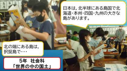 5年生は,社会科「世界の中の国土」の学習を進めています。今日は,日本国内の島や日本を取り囲む海について学びました。