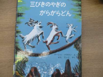 3びきの やぎが くさをたべに やまへ いこうとしますが