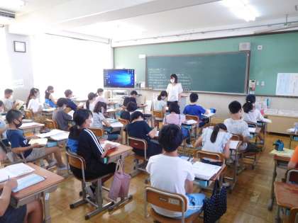 6年生の各クラスでは,みんなの夏休みの話を聞いたり,先生の夏休みを話したりしました。