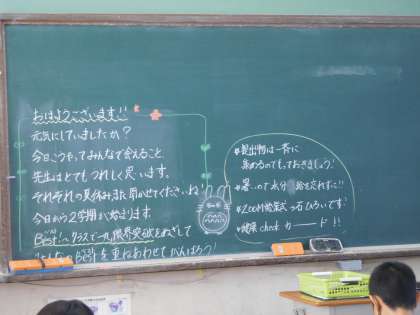 先生のあたたかなメッセージとともに,今日から2学期のスタートです☆