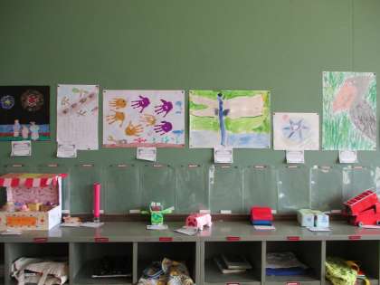 1年生は,夏休みの課題で工作か絵に取り組みました。
