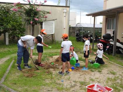 ぞうけいすなばで やまを つくったよ。