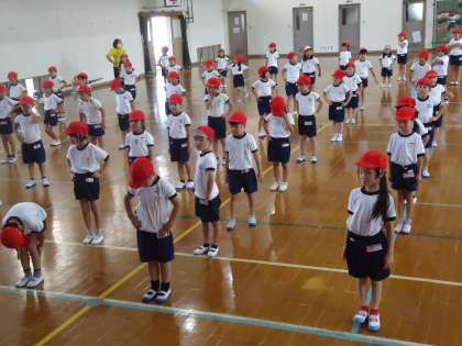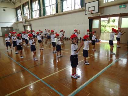 運動会に踊りを練習を始めています。だんだんと動きが変わってきています。